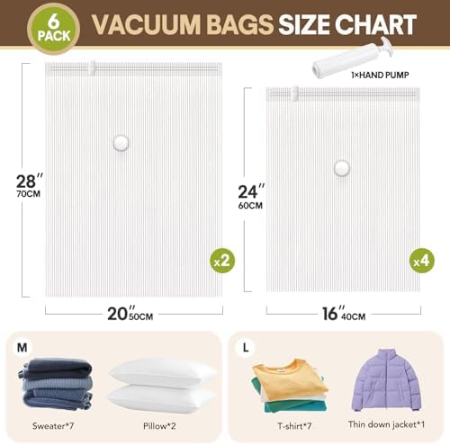 Correct Dimension: The storage baggage vacuum sealed with 4 pack x M (15.7*23.6 inch), 2 pack x L (27.5*19.7 inch), and 1 x hand pump. Varied sizes to compact residence and journey necessities, the journey vacuum baggage with pump is right for each room group and maximizing suitcase house, meet together with your completely different storage wants