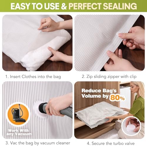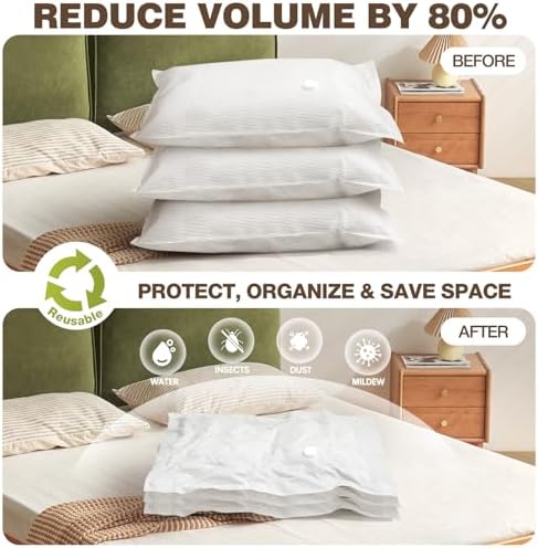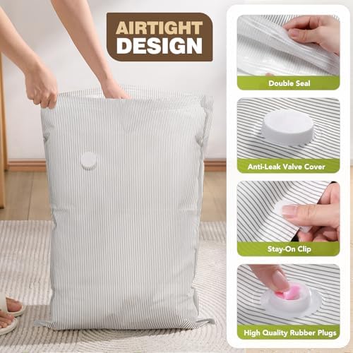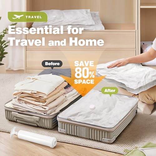 Excessive-High quality Supplies: Our vacuum seal baggage for clothes journey are fabricated from premium high quality Oxford fabric materials and PE, double seal and triple seal turbine valve, the thicker vacuum baggage for journey not solely forestall air leakage and ensure lasting sealing, additionally not crease or break throughout use, these vacuum baggage storage will be reused and saved for a very long time