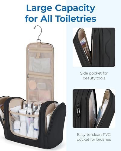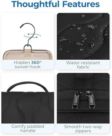 Handy Design – The U-shaped massive opening and double zippers permit easy accessibility, whereas the clear PVC part affords clear visibility of contents. The stow-away 360-degree swivel non-slip metallic hook offers versatile hanging choices.