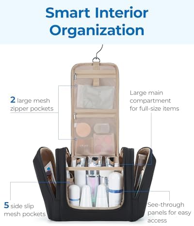 Sturdy Materials – Crafted from light-weight and waterproof material, this toiletry bag for girls is straightforward to wash and protects your belongings from splashes, making it best for journey and on a regular basis use.