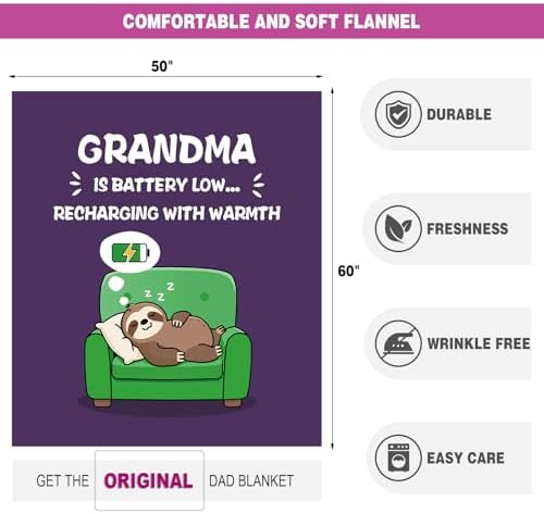 Humorous Birthday Items for Grandma, Grandma is Battery Low Blanket 60″ x…
